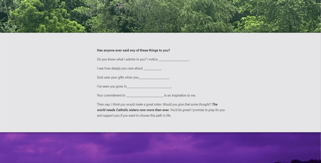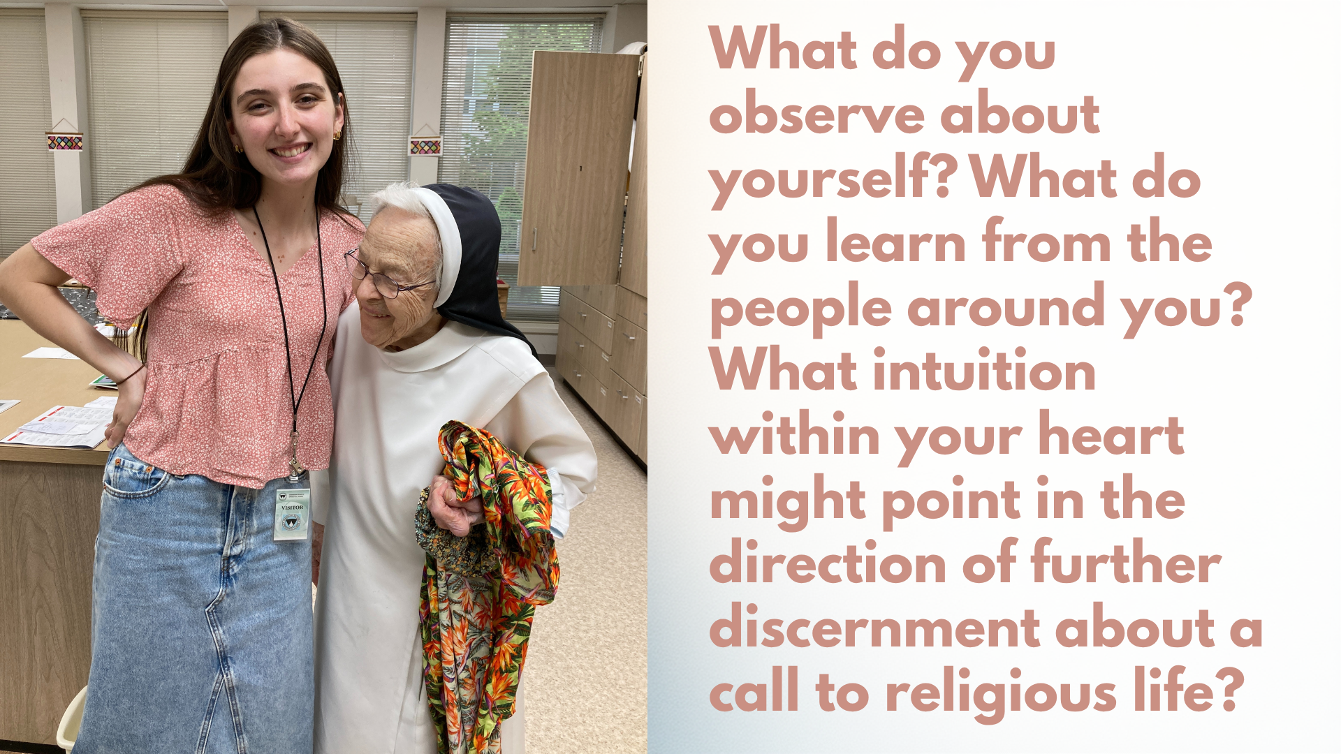 “If you are interested but, on the fence, please call me,” Sister Denise said. “This is really a wonderful opportunity for you to get to know yourself better and to meet other women who, like you, are wondering whether God would be able to use your gifts for the life of the world.”