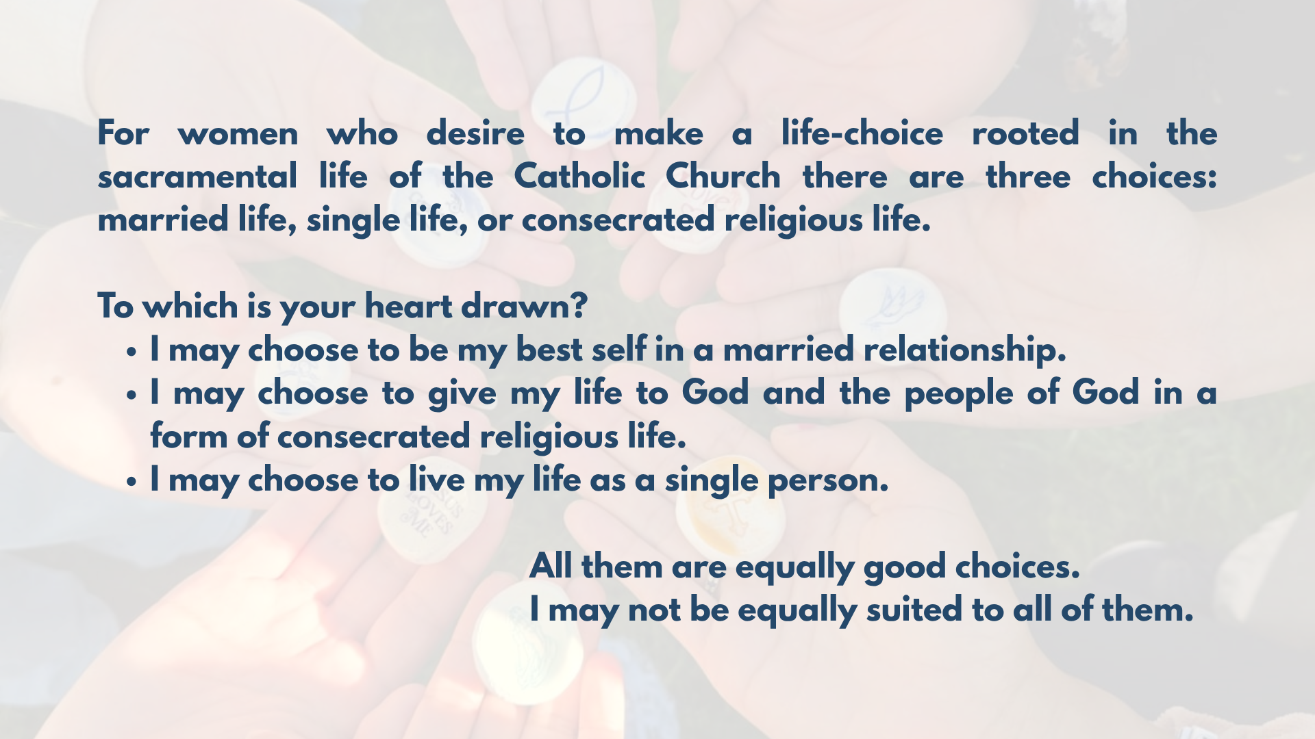 I hope you find the resources on this page helpful. When the time is right, I welcome you to contact me with your questions about a journey of vocation discernment. There is a contact form below.